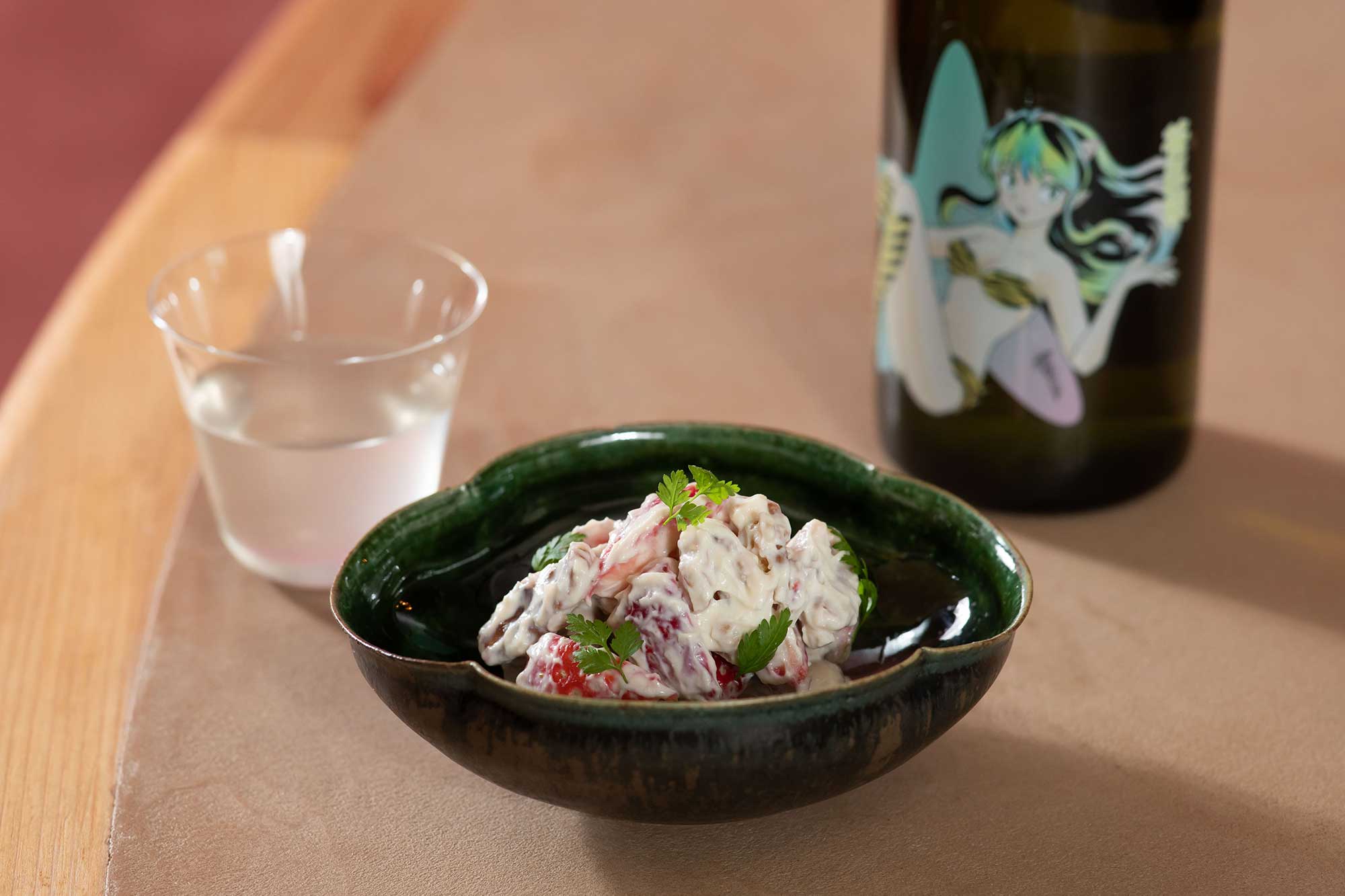 This Sasamasamune is a kijoshu namazake (unpasteurized noble-brew sake). It is characterized by being sweet, light, and fresh. While the image of 'sake means dry' has become common recently, I chose this with the hope that people trying sake for the first time will learn that 'sake can also be this sweet, refreshing, and easy to drink.' This sake is purely sweet compared to TENMEI, so I felt the accompanying dish needed some acidity, which is why I chose strawberries. The acidity of the strawberry lightens the sweetness, while the bitterness, astringency, and texture of the walnuts add a calming element. And by making it a shira-ae (a dish dressed with tofu), it brings all the components together. Although I used strawberries this time, I think it would be enjoyable to try it with various other fruits depending on the season, such as figs or Shine Muscat grapes.