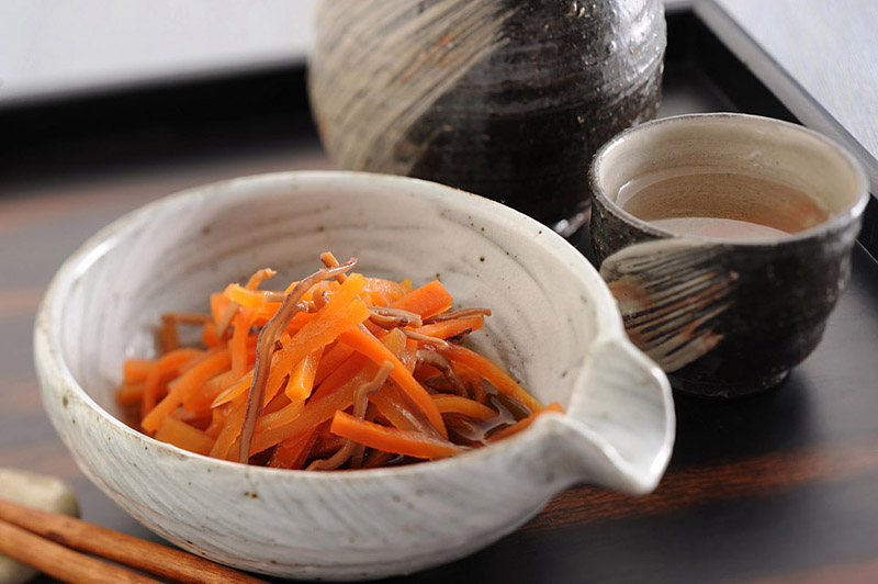 Ika-ninjin (A local dish from the northern Nakadori region, made by marinating dried squid and carrots in a special soy sauce-based sauce).