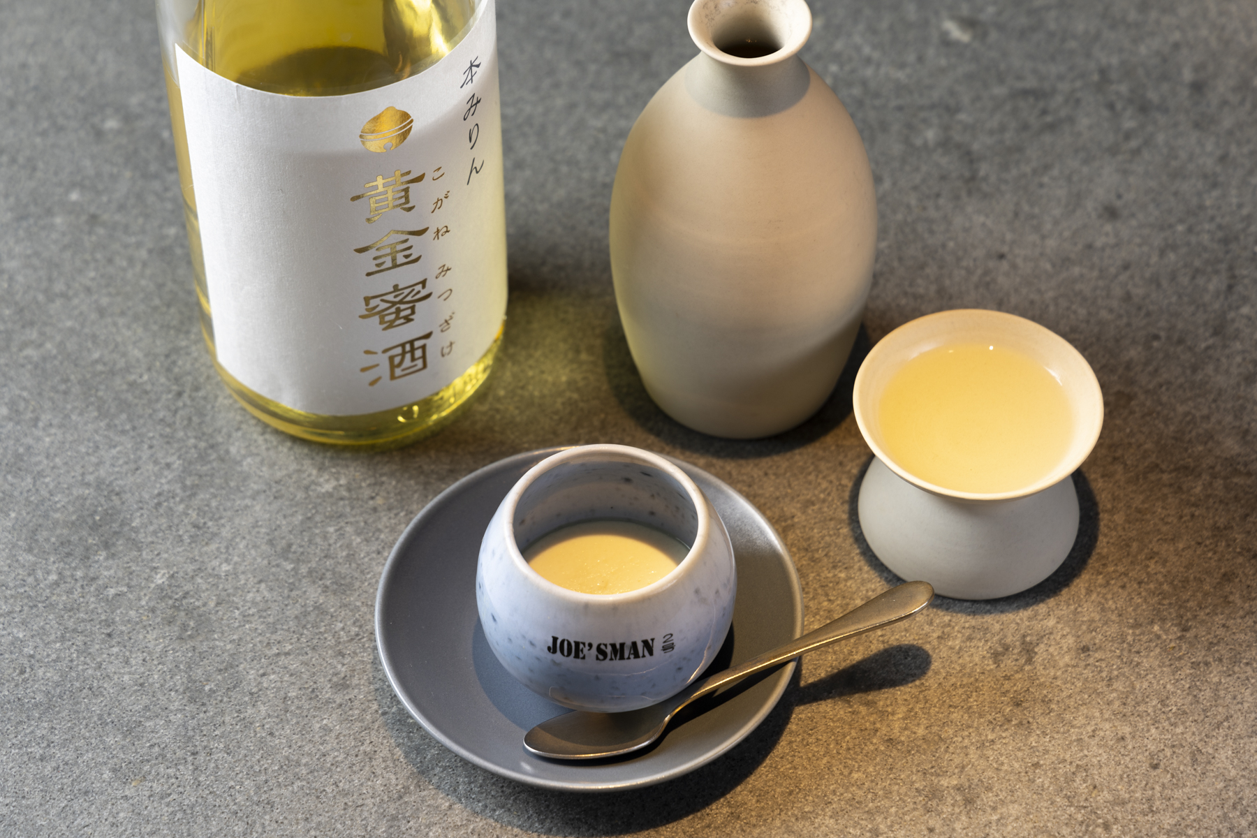 "Kogane Mitsusake" is a hon-mirin (true mirin) with a clear and refined taste. When you take a sip after a bite of the chawanmushi (savory steamed custard) with hard clams and soy milk, it creates a flavor like caramel pudding in your mouth. "Adding a milk foam partway through allows you to enjoy this high-sugar-content hon-mirin to the last drop. This pairing is the signature finale at Takasaki no Okan."