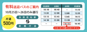 イベント期間は会津若松駅と新鶴庁舎を結ぶ便利な有料送迎バスも運行いたします。