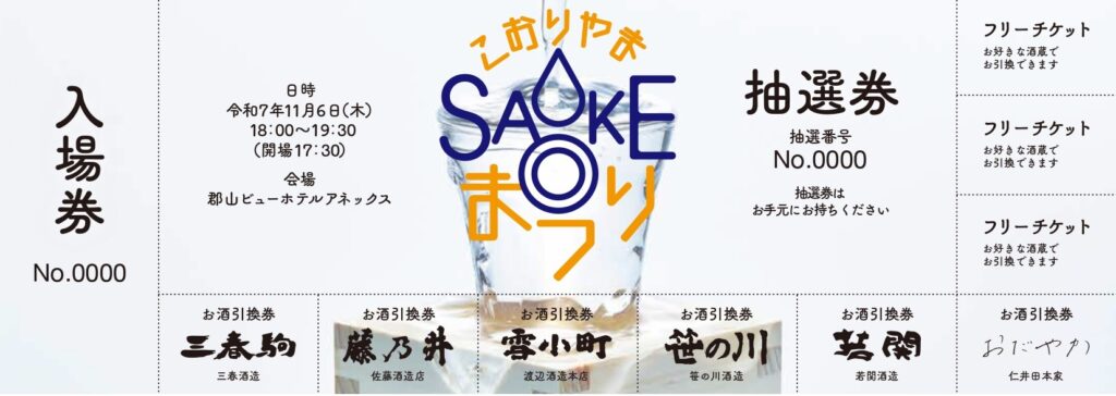 こおりやまSAKE&発酵まつり実行委員会(事務局:郡山商工会議所)では2025年11月6日(木)、郡山ビューホテルアネックスにて「こおりやまSAKEまつり」を開催します。郡山6蔵元の銘酒はもちろん、この時期にしか味わえない「冷やおろし」など数多くの日本酒を呑みくらべできる、日本酒好きにはたまらないイベントとなっています。